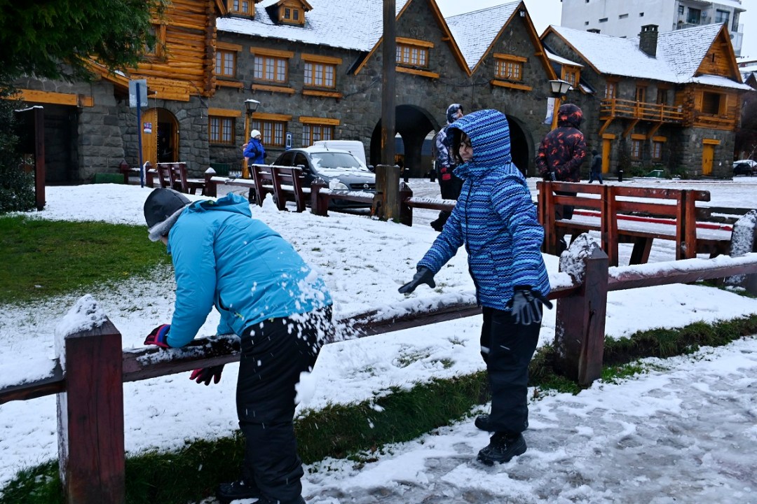 El temporal de nieve se inició el lunes en las zonas más altas del ejido de Bariloche y en toda la cordillera, pero recién hoy se manifestó en el centro de la ciudad donde se formó una capa de manto blanco y pasadas las 10 los copos grandes entusiasmaron a los turistas.