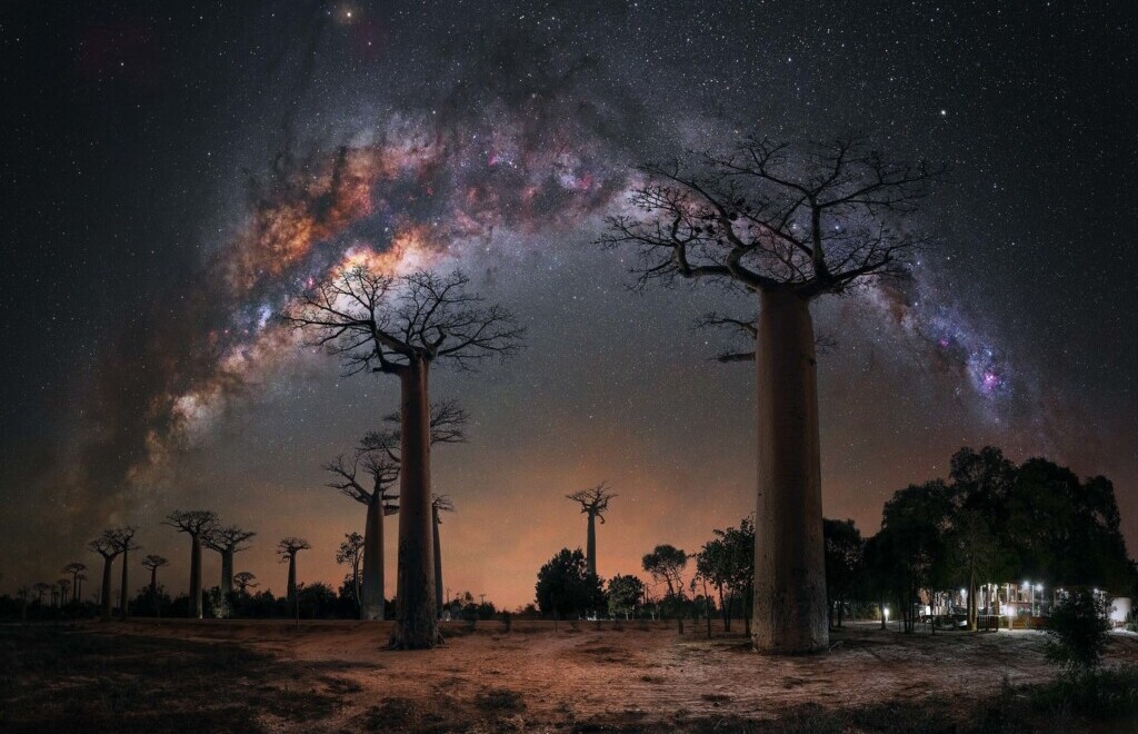 Desde Madagascar, el astrofotógrafo plasmó el arco completo de la Vía Láctea, nuestro hogar cósmico, sobre los imponentes y únicos árboles llamados baobabs.