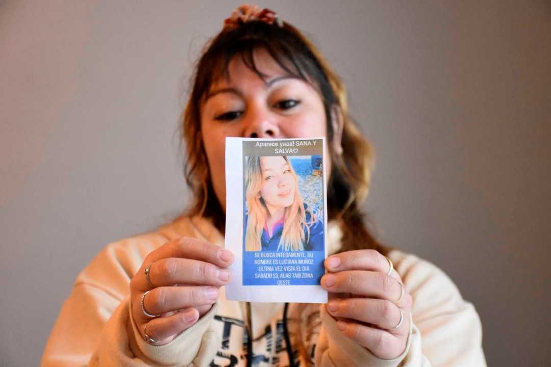 Lila Aguerre por momentos sonríe, aunque su cuerpo está tenso. La desaparición de su hija Luciana Muñoz, hace 41 días, le cambió la vida por completo. A su lado, Verónica Zabala, su abogada. En los próximos minutos insistirán, ambas, en desmentir lo que de Luciana se dice.