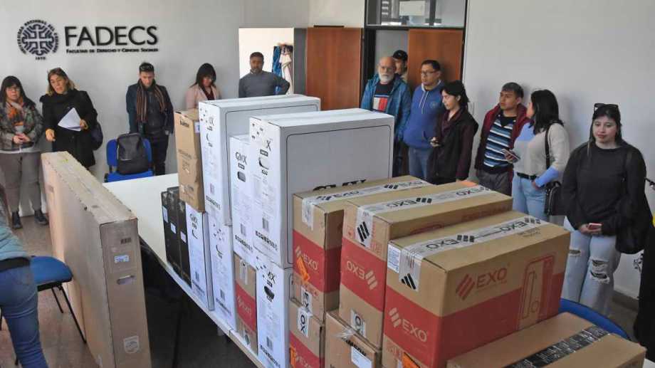 Un importante montículo de cajas con equipos tecnológicos nuevos llenó las instalaciones del Consejo Directivo de la Facultad de Derecho y Ciencias Sociales este miércoles, recién llegados a Roca para nutrir a las carreras de Comunicación Social de la Universidad Nacional del Comahue.