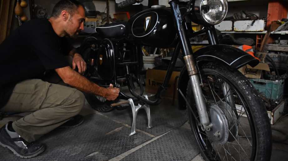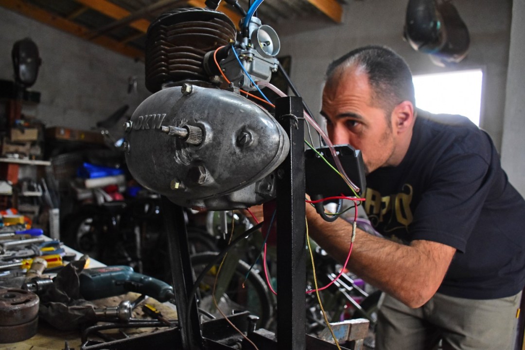 En un taller de tres metros por siete Fabián González revive esas joyas del motociclismo argentino. A veces las máquinas solo llegan con el puro chasis y él se encarga de buscar las piezas originales de los modelos de las décadas del 60, 70, 80 y 90. El trabajo es muy meticuloso.