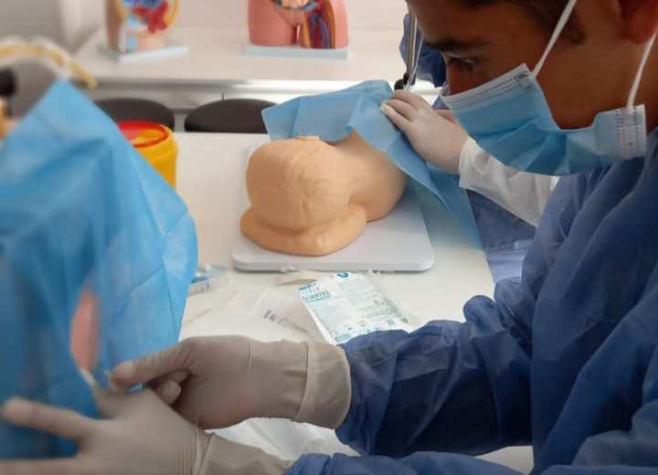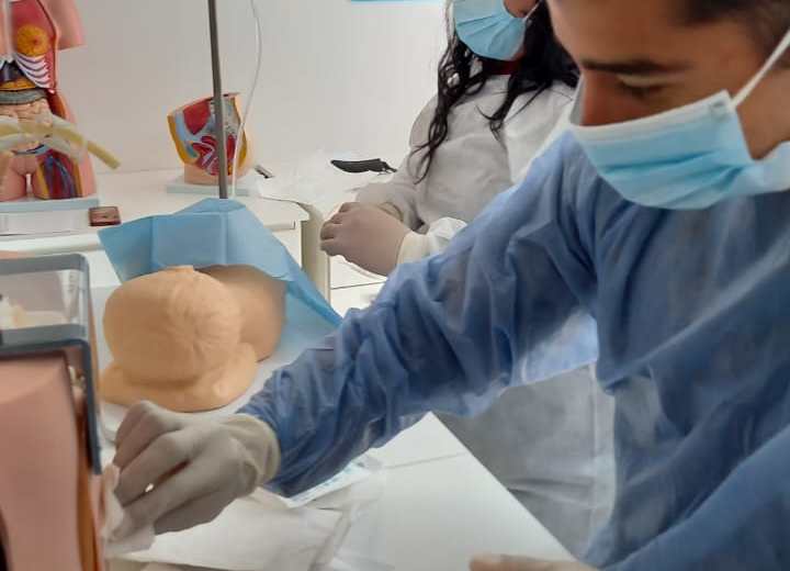 Esta semana, los estudiantes de Medicina también participaron de la simulación de una punción lumbar que se realiza ante la sospecha de un caso de meningitis.