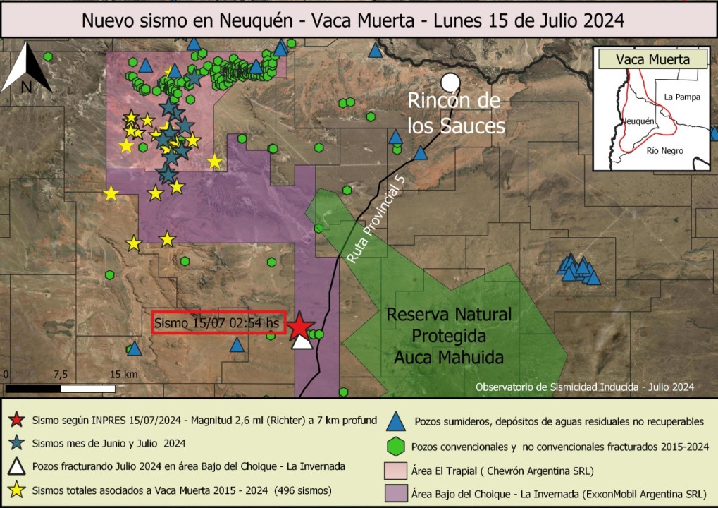 En total, son 49 los sismos ocurridos en la provincia de Neuquén en 2024, «39 de ellos asociados al fracking y solo 10 producidos naturalmente», precisaron.