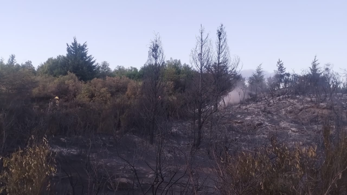 Orlando Baez, integrante del Servicio de Prevención y Lucha contra Incendios Forestales (SPLIF), detalló a Diario RÍO NEGRO que «la superficie afectada fue de 100 metros por 60«. Y explicó que el incendio se registró en una zona de vegetación seca, «el material afectado fue retama y pino», comentó.