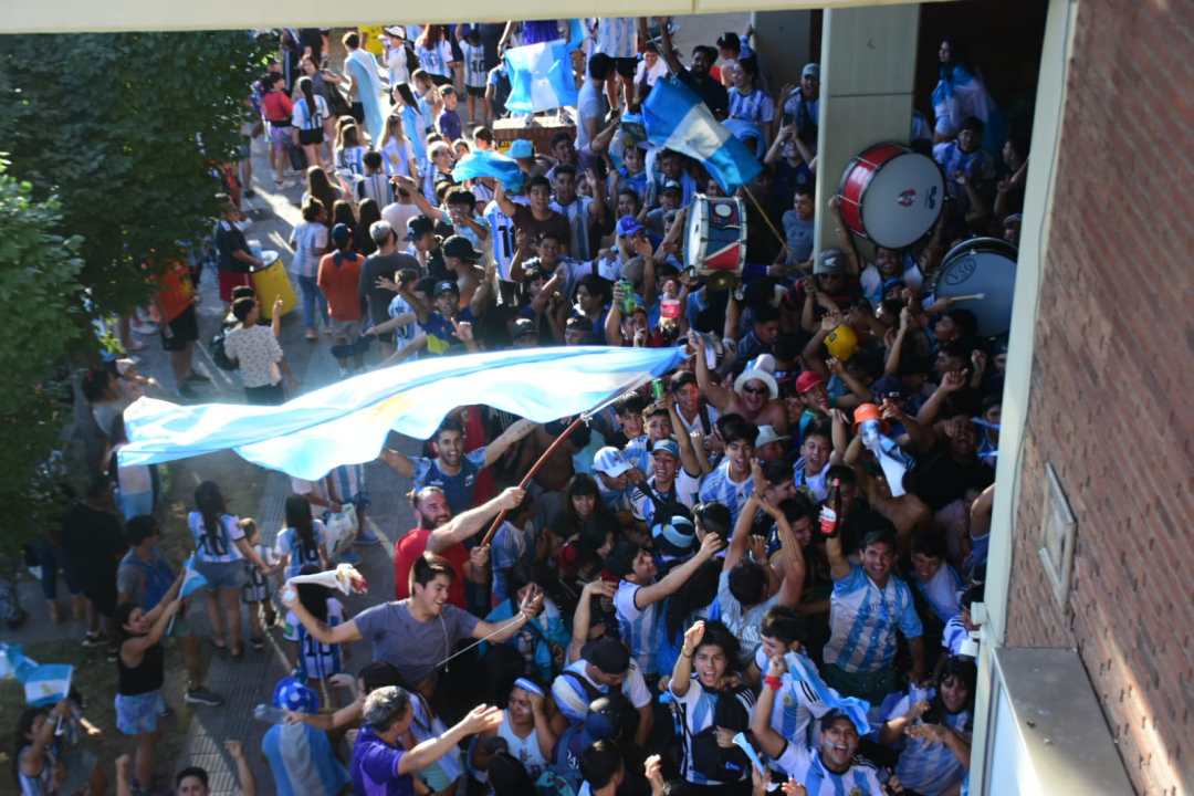 La esquina de avenida Roca y Tucumán se tiñó de celeste y blanco. Niños y grandes saltaron en grupo para celebrar el triunfo ante Polonia tras los goles de Alexis Mac Allister y Julián Álvarez.