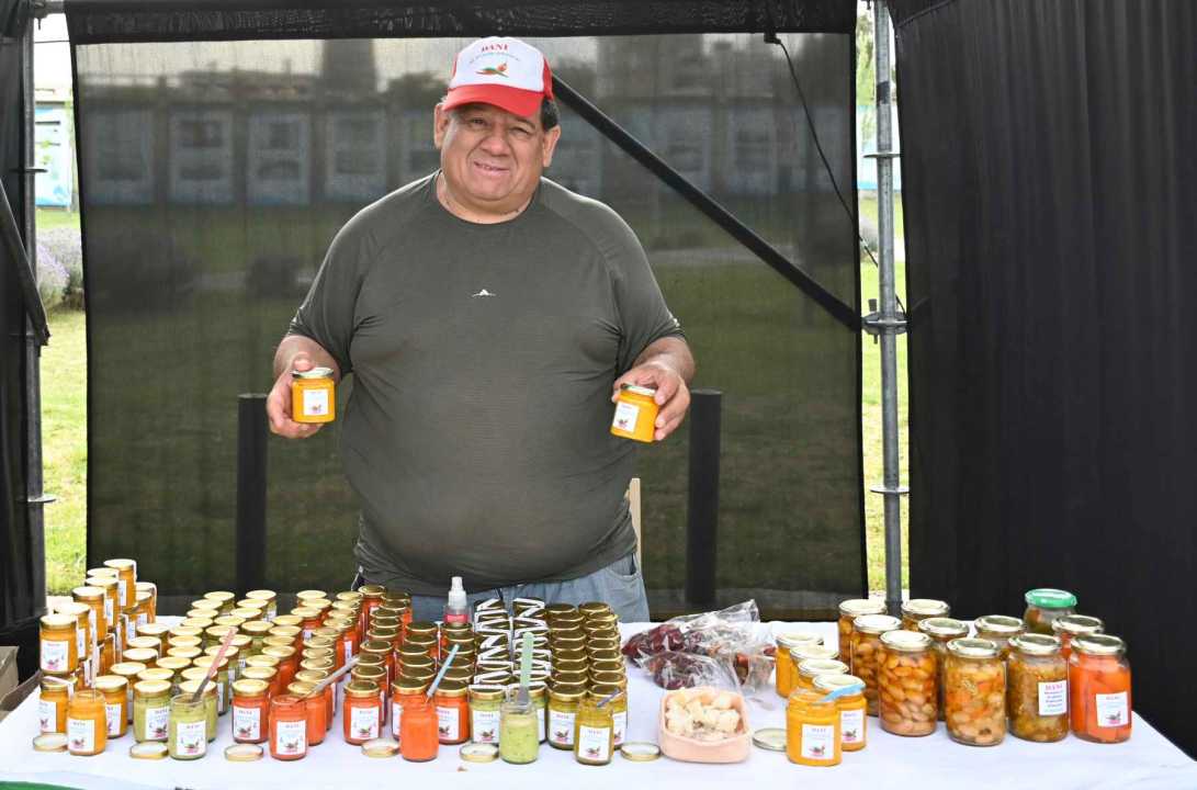 Unos puestos más adelante está Daniel. Su emprendimiento se llama “Ají picante artesanal” y también, sus ingresos dependen de este proyecto. El producto que vende lo heredó de familia. “Vengo de generaciones donde se enseñaba a hacer conservas”, cuenta, “traigo ajíes de Perú y los preparo de distintas maneras”. Levanta un frasco y dice: “este por ejemplo es para carnes, para ponerle al asado o a un churrasco”. Lo apoya y levanta otro más grande. “Este es al natural, con aceite, también muy rico”.