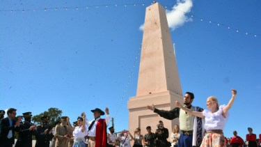 Después de mucho tiempo el acto oficial por la gesta de Marzo no se pudo realizar en el tradicional Cerro de la Caballada y se optó por el predio de la fiesta donde se erigió una réplica a escala del monolito que recuerda a los héroes de 1827.