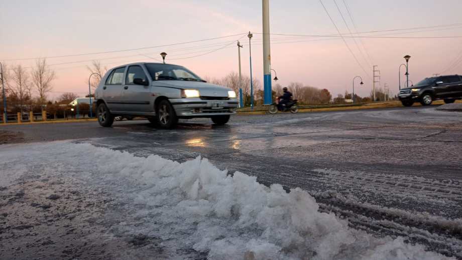 Por hielo, cortan el tránsito en la rotonda de calle Mendoza y Gelonch, en Roca