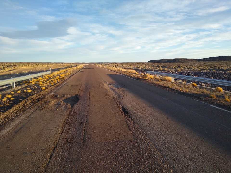 La mayor preocupación la genera el marcado deterioro que viene sufriendo la calzada entre Los Menucos y Jacobacci. Presenta sectores con banquinas deformadas, profundos pozos, grietas y también una importante separación entre dos tramos en la estructura del puente sobre el arroyo Maquinchao.