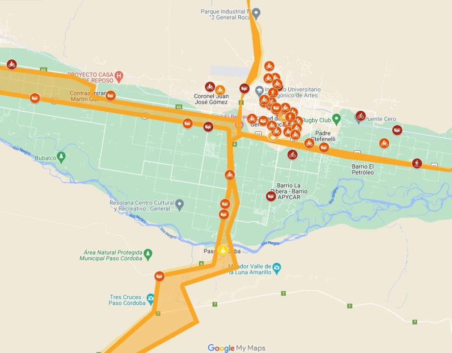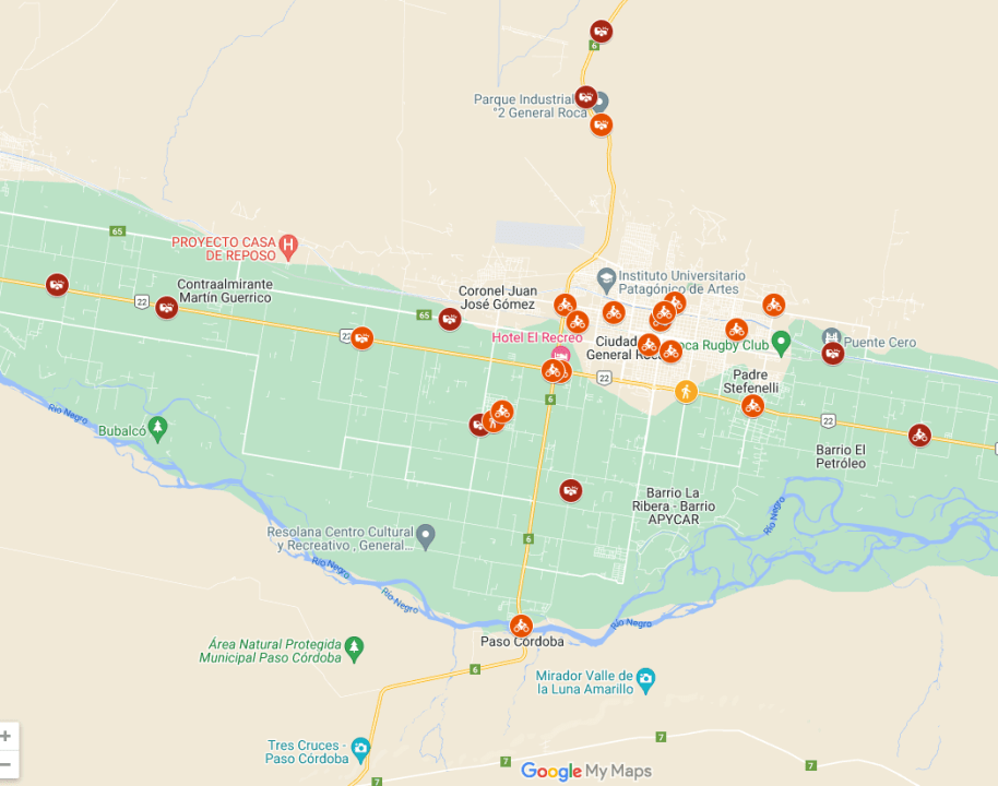 Según un mapa elaborado por el Departamento de Tránsito, en 2022 se registraron 16 siniestros viales protagonizados por motos en Ruta 22, Ruta 6 y dentro de la ciudad. A pesar del elevado número, en comparación al 2021 resultó menor, ya que en ese momento se verificó que hubo 22 accidentes.