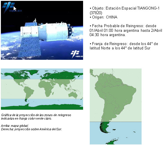 La estación en cuestión se llama Tiangong-1 fue lanzada el 30 de septiembre de 2011 y se preveía su retorno en 2016, pero se perdió el control de la misma por lo que desde ese año está cayendo lentamente.