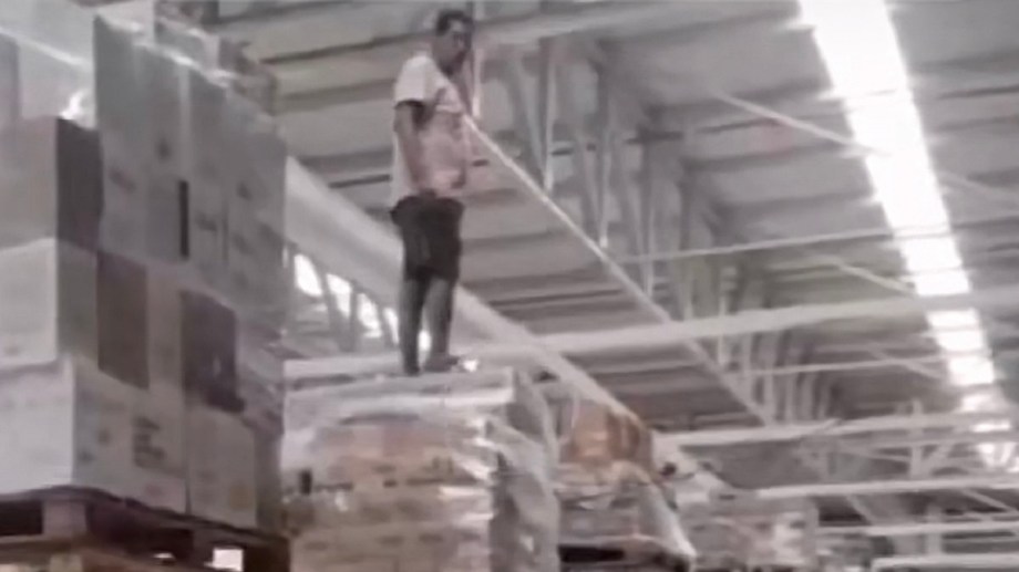 Al denegarle realizar la actividad, el hombre «se ofuscó», ingresó al sector de ventas y se trepó a una de las góndolas ubicada a tres metros del piso. Quienes se encontraban en el supermercado filmaron lo sucedido y registraron al hombre trepar a un Pallet que contenía conservas de vidrio.