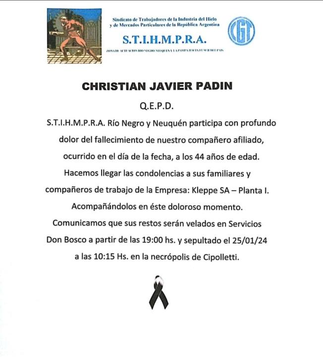 Desde el Sindicato de Trabajadores de la Industria del Hielo y de Mercados Particulares de la Republica Argentina (Sthimpra), emitieron un comunicado lamentando la muerte del trabajador.