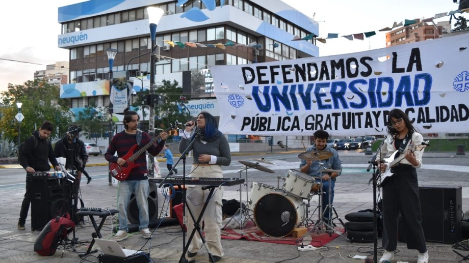 Docentes, estudiantes, militantes y vecinos se sumaron hoy al reclamo en defensa a la educación pública por las calles de Neuquén. Un festival con música y muestras artísticas mostró en el monumento a San Martín la profunda preocupación por el presente de la Universidad Nacional del Comahue (UNCo) y otras casas de altos estudios.