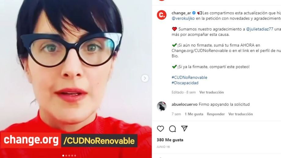 La creadora de la petición, Verónica Kuljko, sostuvo que el hecho de que «una discapacidad sea permanente significa que es para toda su vida», con lo cual se pregunta «por qué someter a esas personas a trámites interminables para demostrarlo».