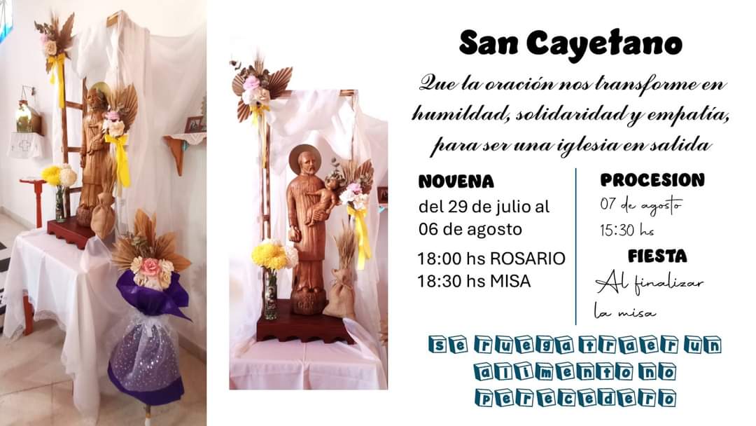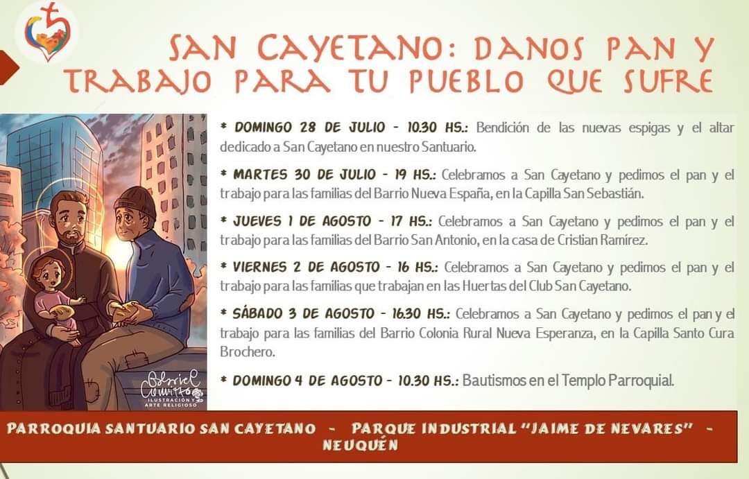 En la capilla San Cayetano de Cutral Co, se realiza el rezo del Rosario todos los días desde las 18, y luego continúa con la Misa. El 7 de agosto habrá una procesión.