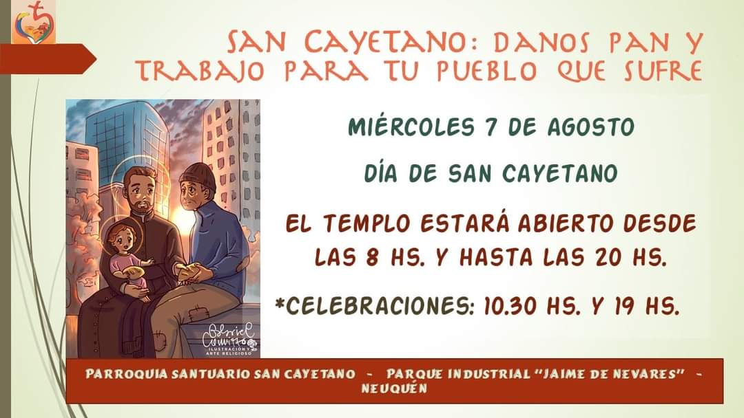 Cada 7 de agosto, la Iglesia Católica celebra a San Cayetano, patrono del pan y del trabajo. Una devoción muy extendida en Argentina. En Neuquén y Río Negro hay previsto misas y procesiones para ese día. En algunos sitios ya comenzaron con novenas. Estos son los horarios.
