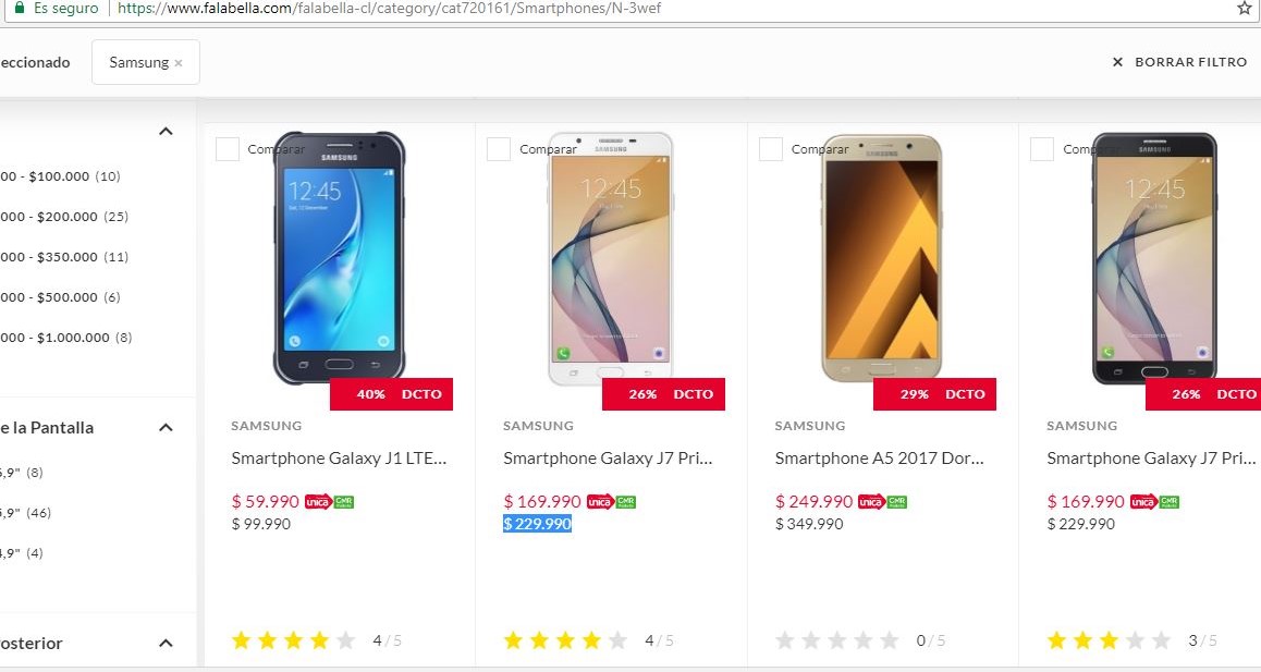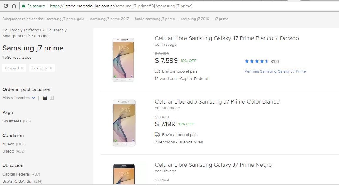 Por ejemplo, un Smartphone Samsung J7 Prime liberado se consigue en Argentina, por Mercado Libre, a $ 7.200 pesos (u$s 361) en 12 cuotas sin interés. El mismo modelo en tienda Paris o Falabella de Chile no sólo cuestan más caro (entre $ 7.500 pesos y
