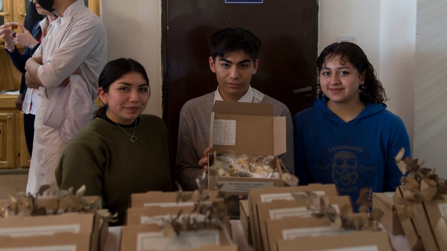 Contó que en sexto año, los estudiantes tienen cuatro talleres (chocolatería, pastelería, bar y desarrollo gastronómico), espacios que aprovecharon para trabajar en detalle la producción de la caja. “Intervienen un montón de aspectos, como el sabor, la estructura, las texturas de los alimentos y cómo conservarlo. Cuando empezaron las prácticas, quedaban secos o con mucha humedad. O el recipiente donde los ponían no era el adecuado”, detalló.