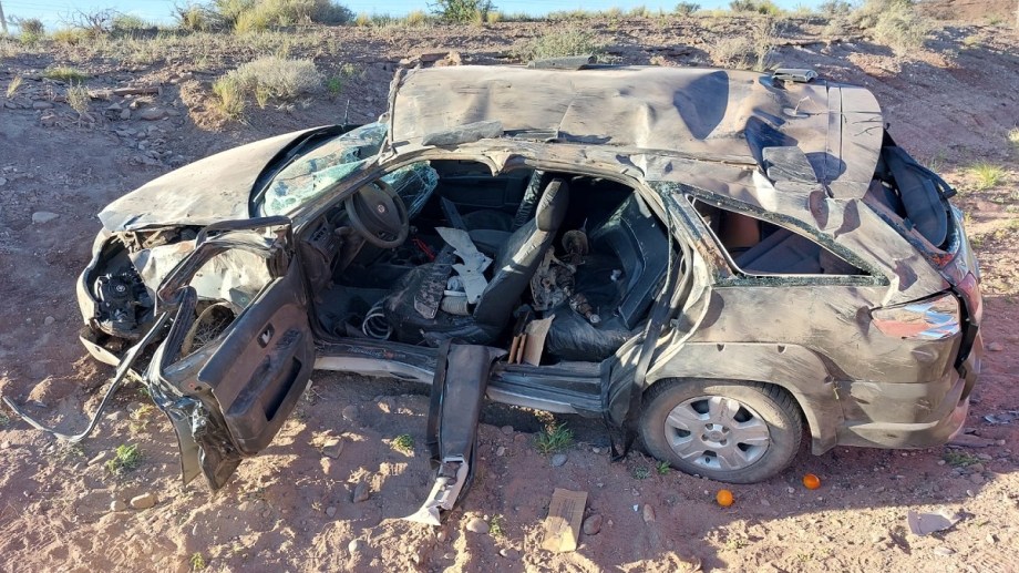 El vuelco del Fiat Palio Aventure ocurrió ayer en el kilómetro 1336 de la Ruta 237, cerca de Picún Leufú. En el vehículo se trasladaban cuatro personas y el padre, conductor del auto, fue quien tuvo que ser asistido de manera urgente ya que se encontraba inconsciente.
