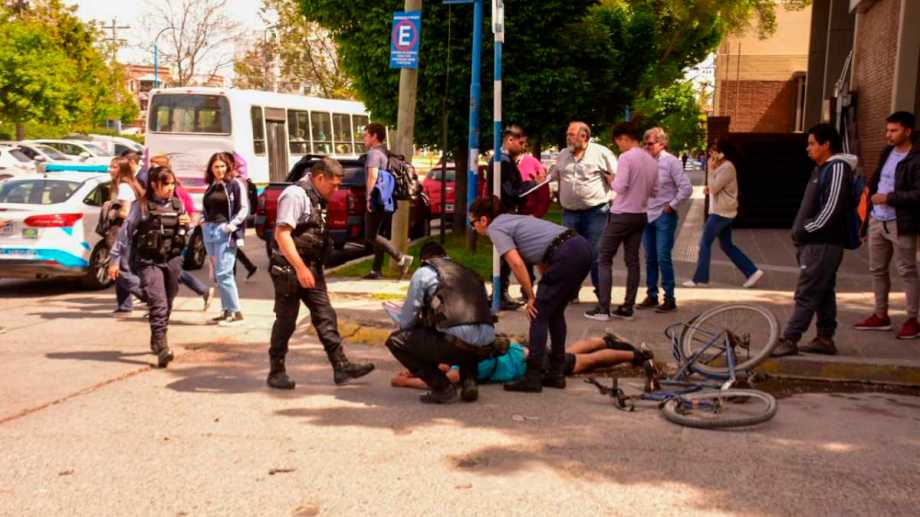 Un nuevo incidente de tránsito sorprendió este mediodía a los vecinos que transitaban por el centro de Roca. Esta vez el protagonista fue un ciclista de 28 años, que terminó tendido en el piso luego de haber sido arrollado.