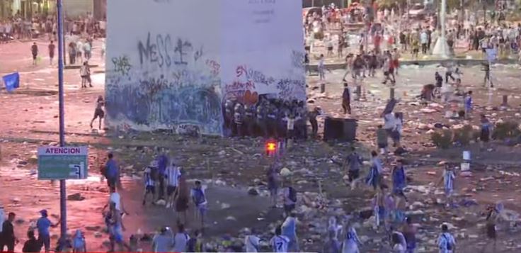 Los incidentes comenzaron alrededor de las 20 en la plaza de la República, donde se encuentra emplazado dicho monumento, y en cuyo interior se encontraba un grupo de personas que festejaba el campeonato mundial de fútbol obtenido por Argentina.