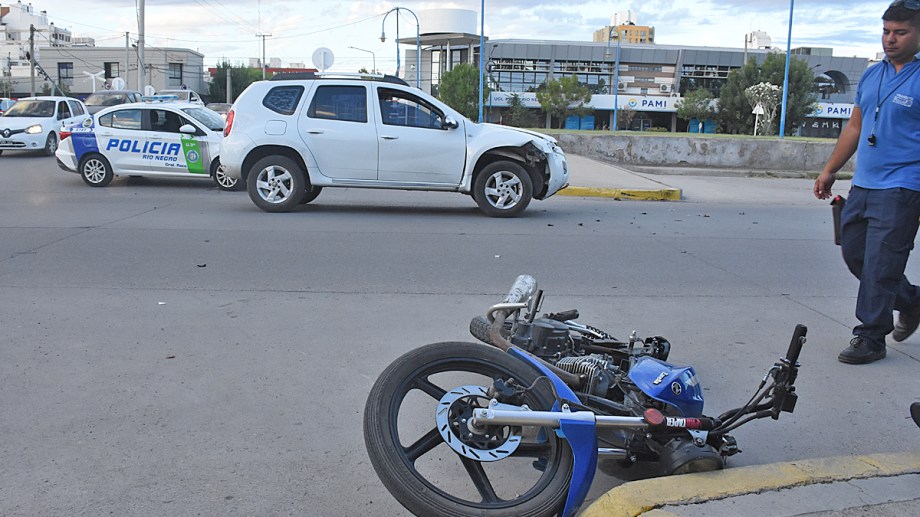 Hoy cerca de las 20 una camioneta impactó contra un motociclista en pleno centro de Roca. Según testigos que vieron el accidente, dado el impacto el joven del rodado menor salió «disparado».