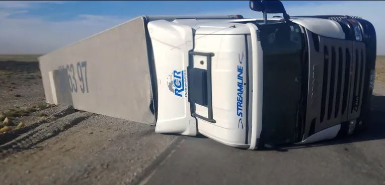 Este jueves se registraron dos vuelcos de camiones sobre la Ruta Nacional N° 40, en cercanías del paraje santacruceño Bajo Caracoles, ubicado al sur de Perito Moreno. La zona fue blanco de intensas ráfagas de viento, que en algunos casos, superaron los 120 km/hr.