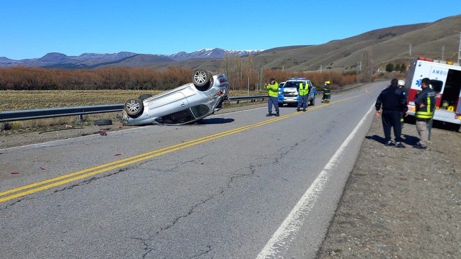 Cuando personal rescatista llegó, la mujer había logrado salir del habitáculo del vehículo que quedó con las ruedas hacia arriba en una de las manos de la ruta.