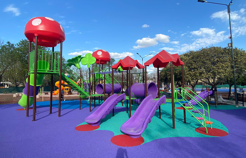 Esta pequeña empresa recibe neumáticos fuera de uso (NFU), los tritura y vende el scrap a fabricantes que emplean el granulado de caucho como materia prima en la fabricación de canchas de fútbol sintético, pistas de atletismo y baldosas de caucho para plazas, entre otras cosas, lo que evita que sea enterrado. “Para la plaza blanda del Parque Bustos reciclamos aproximadamente 4.000 NFU recolectados en la provincia y reciclados en Córdoba capital. Es la superficie antigolpes más extensa de la ciudad y un exponente del interior del país», destaca.