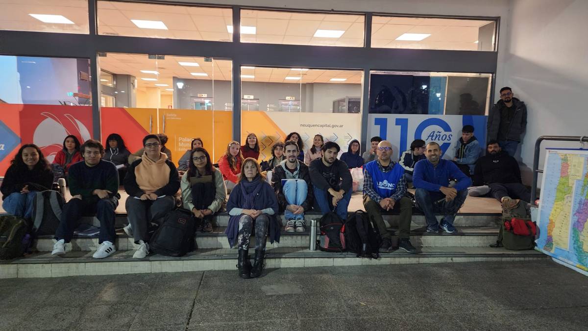 En la tarde del lunes, los estudiantes de la facultad de Humanidades de la Unco presenciaron una clase pública en la sede del municipio en el centro neuquino sobre Avenida Argentina y Roca.