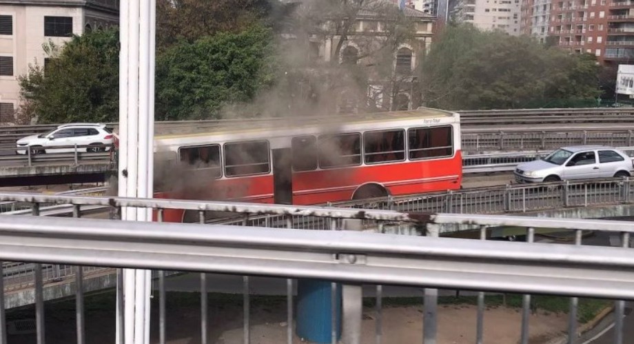 Video: dramático incendio de un colectivo escolar con 38 chicos en la General Paz