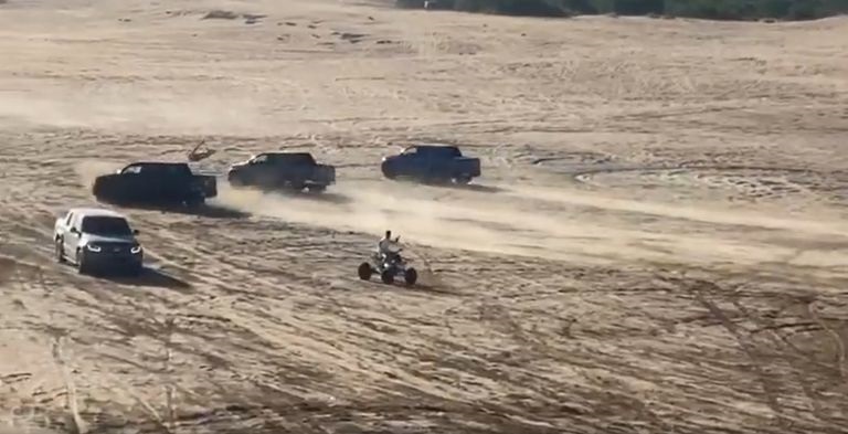 Video: tres camionetas corrían una picada en la playa y chocaron a un motociclista