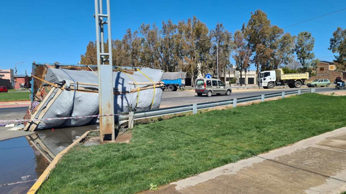 Se desconoce si por algún desperfecto mecánico o por la condición de la rotonda -según indican los conductores tiene poco radio de giro- el tractor se desprendió de la carga que quedó volcada sobre uno de sus laterales. Algunas de las cajas se cayeron y los circunstanciales vecinos que pasaban tomaron algunas frutas.
