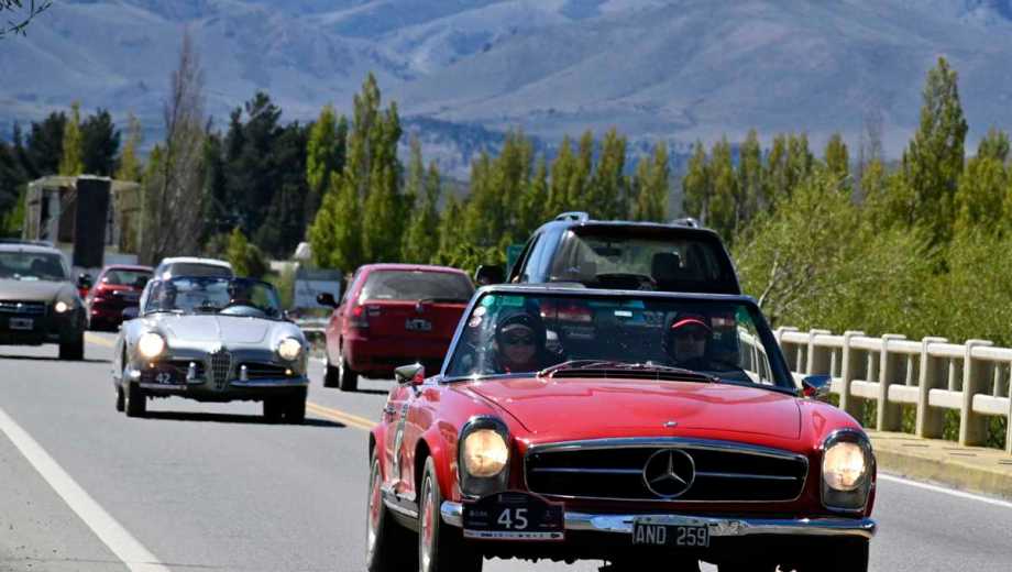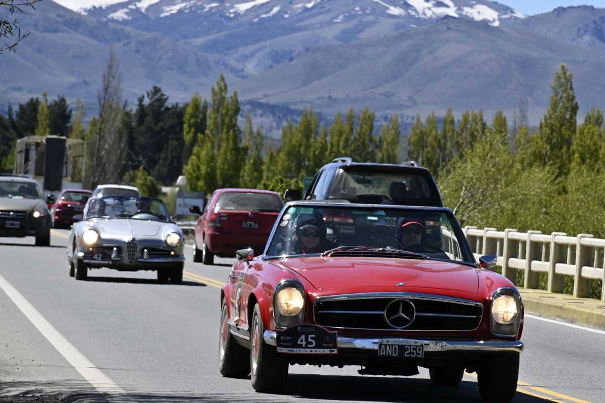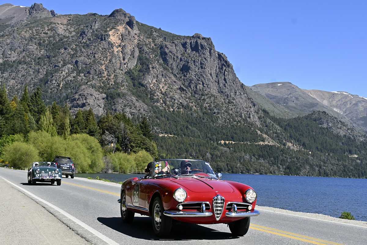 Las joyas sobre ruedas de las 1.000 Millas Sport disfrutaron de la primera etapa con sol pleno y calor en Bariloche. Foto: Chino Leiva