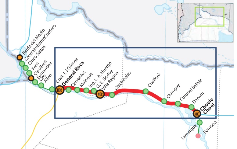 La nueva red está prevista “entre Cipolletti y Pomona, en dos etapas” para la segunda -entre Roca yCipolletti- “se está trabajando en el pliego de la licitación”.