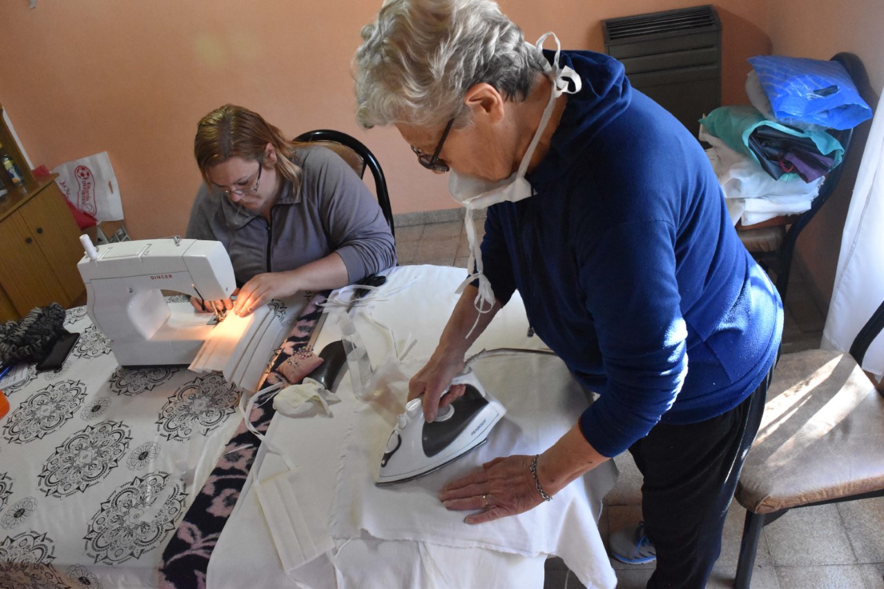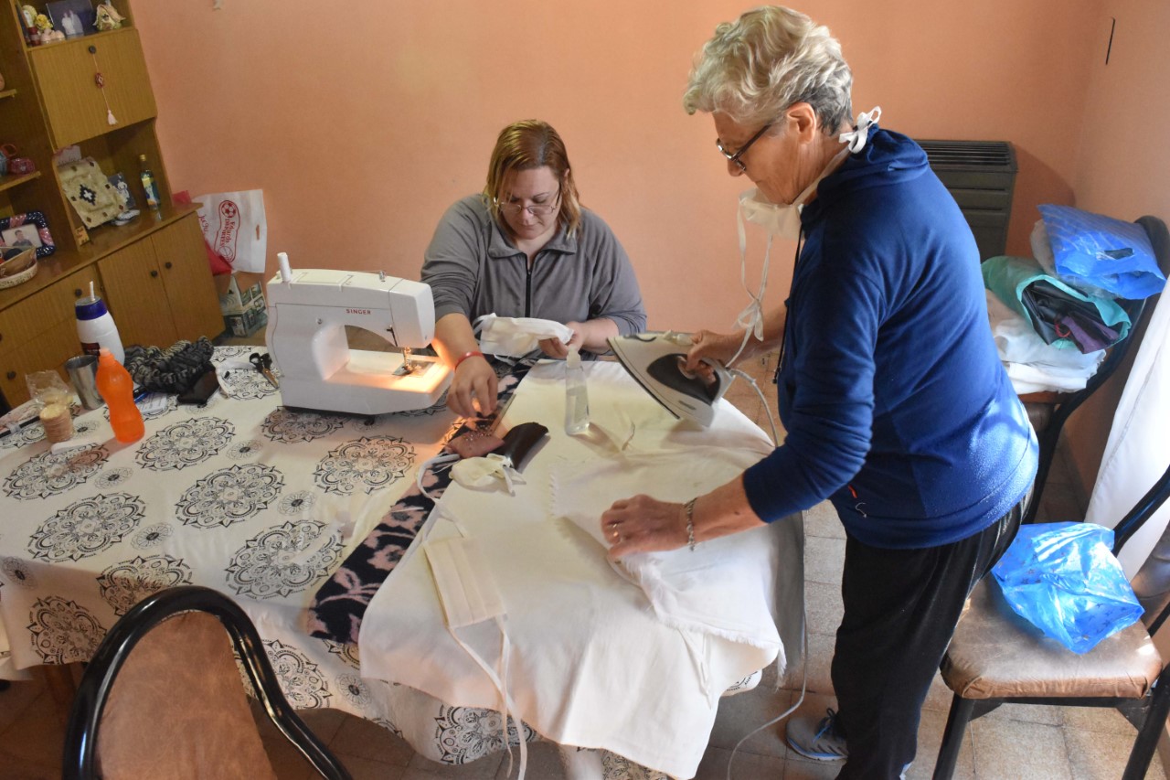 Y lo hicieron. El lunes y martes, a las siete de la mañana, apenas después de tomar los primeros mates , comenzaron con el trabajo comprometido. Solo pararon por una hora al mediodía, para almorzar algo rapidito y seguir hasta la hora de la cena y luego como “postre” terminar con algunos barbijos más que están casi al terminar.