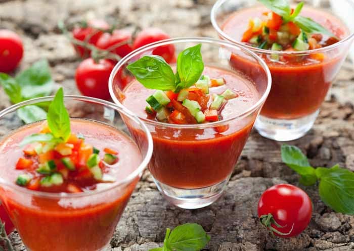 – Se puede presentar en bols individuales agregando cubitos de pepinos o en jarros para beber.