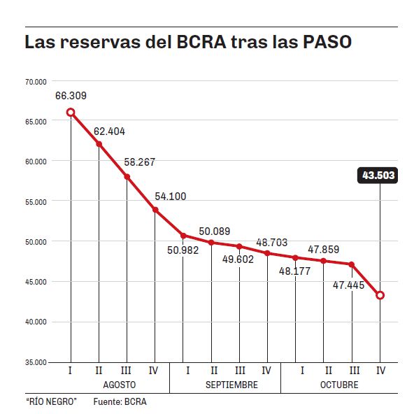 Los millones de reservas que resignó el Banco Central entre los meses de agosto y octubre de este año.