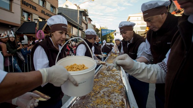 Sociedad Bariloche elaboró la barra de chocolate más larga del mundo Es el principal atractivo de la Fiesta Nacional del Chocolate que se disfruta en la calle Mitre. Durante la actividad se volvieron a manifestar los policías que mantienen su reclamo por mejoras salariales. Mirá el video. Por Soledad Maradona