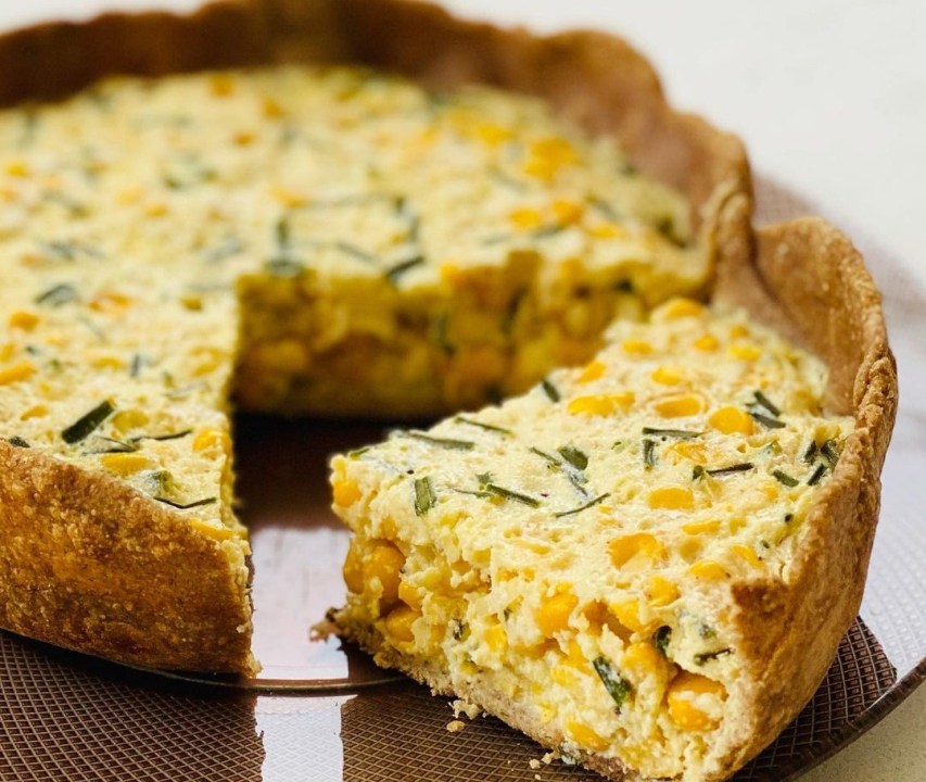 Cocinar el choclo y desgranar. Picar y saltear la cebolla. Precalentar horno a 180° C. En un bol mezclar todos los ingredientes y agregar encima de la base. Llevar al horno por 30 minutos y a disfrutar.