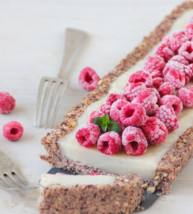Tarta sin horno de vainilla y frambuesas