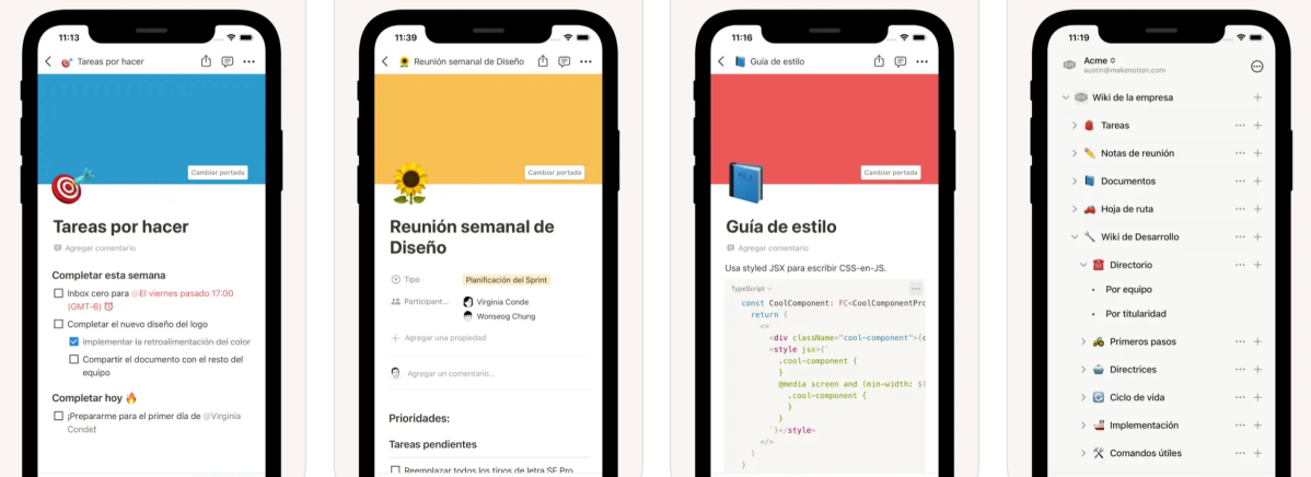– Notion. Gratuita y versiones de pago. Disponible para Web, iOS y Android.