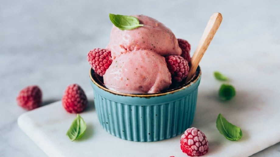 - banana congelada (pueden hacer solo de frambuesas y utilizan stevia en polvo para endulzar)