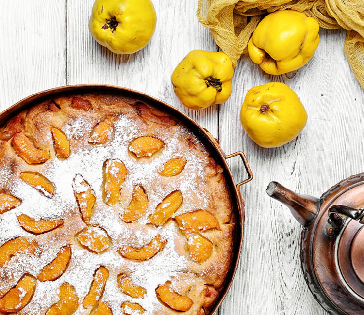 Precalentamos el horno a 180º. Enmantecamos y enharinamos un molde redondo y volcamos la masa. Colocamos encima los gajos de membrillo cocido que teníamos reservados. Horneamos entre 45 y 50 minutos o hasta que veamos que la masa está doradita.