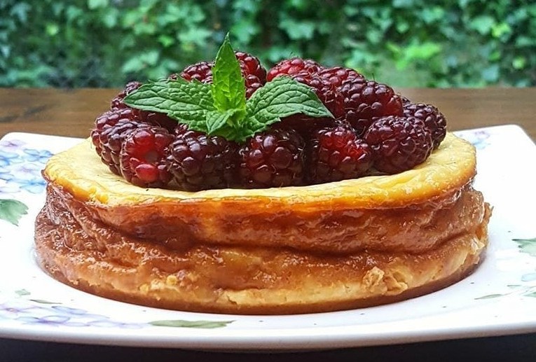 Volcar en el molde enmantecado y hornear unos 25-30 minutos hasta que los bordes estén dorados y el centro tiemble un poco, al igual que la cocción del cheesecake. Apagar el horno y dejar la torta adentro durante 1 hora. Retirar del horno y cuando esté a temperatura ambiente, guardar en la heladera durante al menos unas 3 horas antes de desmoldar y servir. Decorar con frutos rojos por encima.