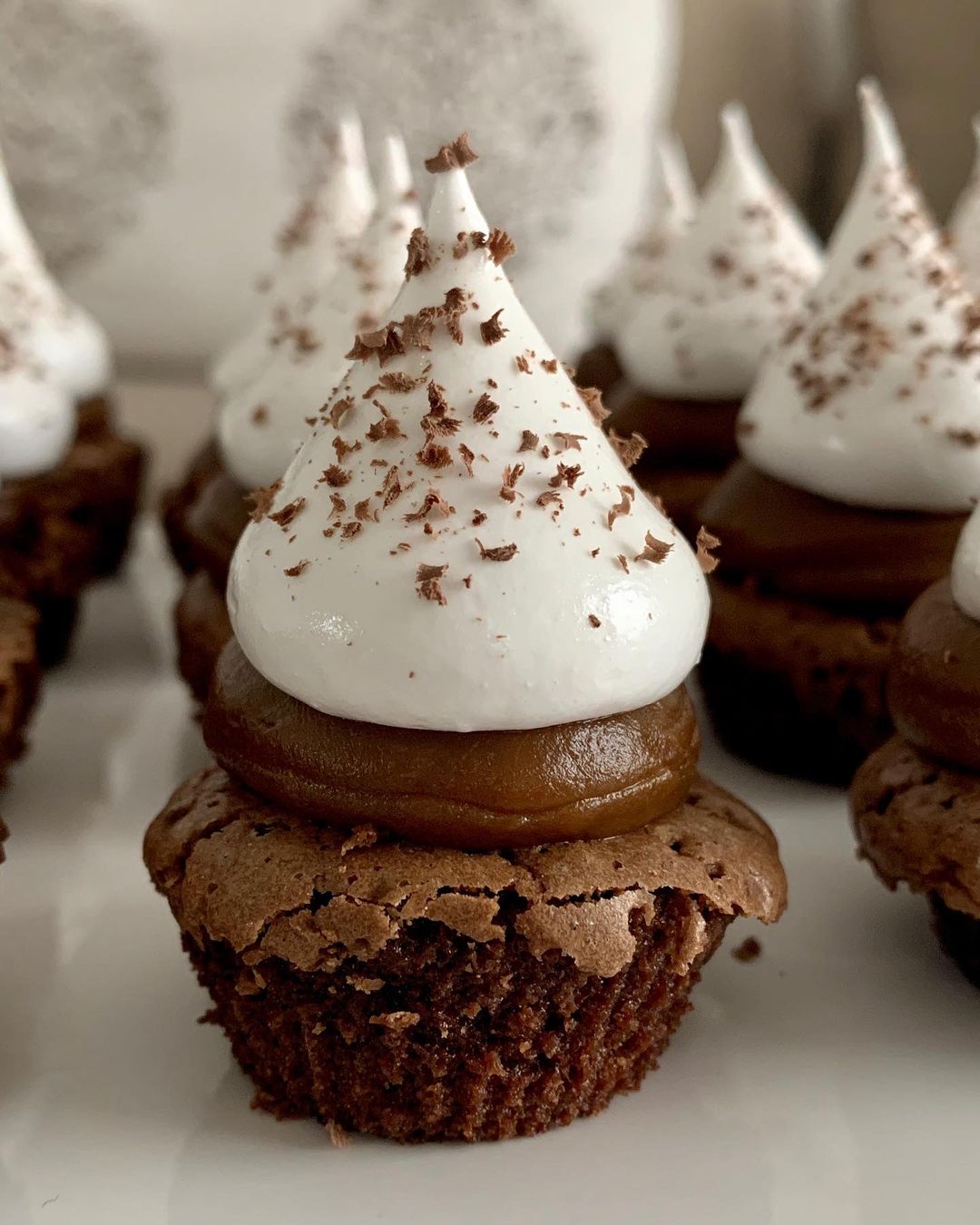 Derretir el chocolate y la manteca a baño maría. Por otro lado batir a blanco los huevos con el azúcar. Incorporar la mezcla del chocolate derretido a la de los huevos y por último la harina tamizada. Mezclar bien. Rellenar moldes de mini muffins o pirotines hasta 3/4 partes de su capacidad. Cocinar en horno fuerte 180° por 10-12 minutos aproximadamente hasta que se forme la costra por arriba y por dentro quede húmedo. Una vez frío cubrir el brownie con el dulce de leche repostero, si quieren que queden más prolijos les recomiendo usar manga.