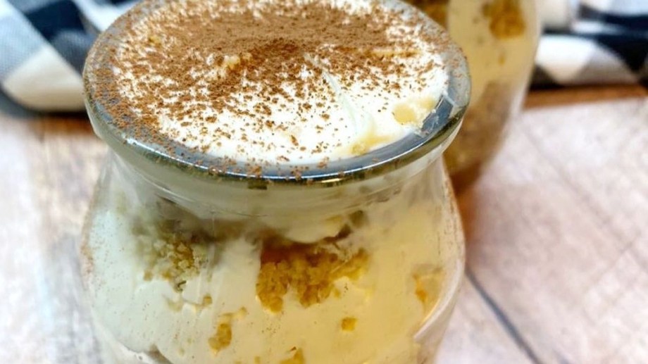 6- En el molde que hayas elegido, frascos, copas o una bandeja vamos intercalando las preparaciones. Una capa de bizcochuelo y una capa de crema. Si te gusta entre capa y capa podés sumar granola, cacao amargo o canela. Llevar a la heladera hasta el momento de comer.