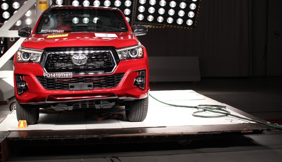 Las pruebas de choque impacto frontal y lateral de Hilux fueron realizadas en 2015, bajo el protocolo anterior, alcanzando las cinco estrellas para protección ocupante adulto e infantil.