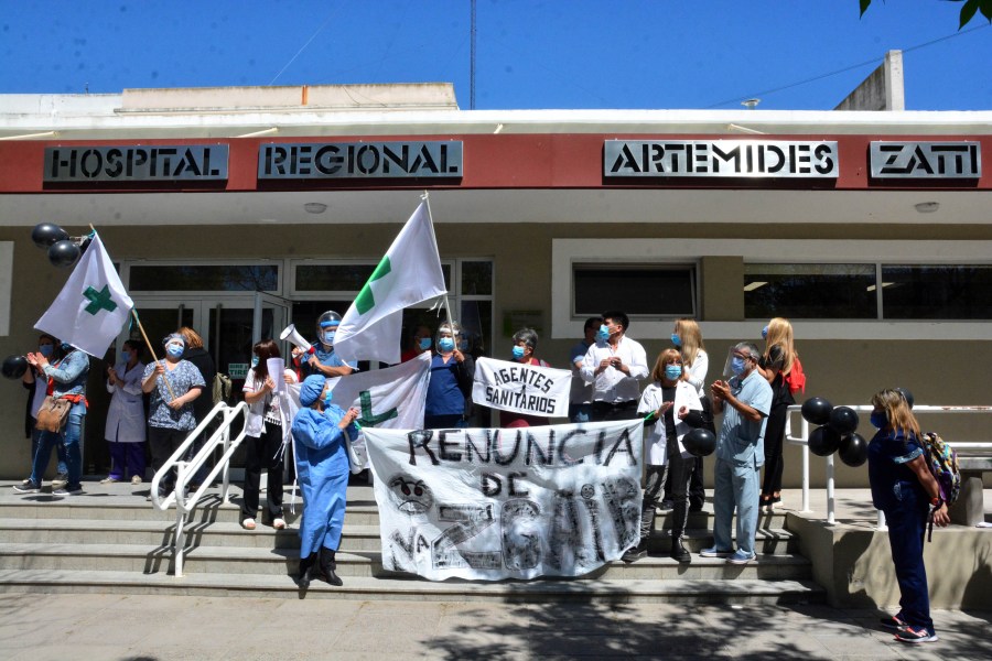 Trabajadores de la Salud de Viedma volvieron a manifestarse en el hospital Zatti “en defensa de nuestros salarios, por la defensa de nuestros puestos de trabajo, por el cuidado de la comunidad y, siempre, en defensa de la Salud Pública provincial”.
